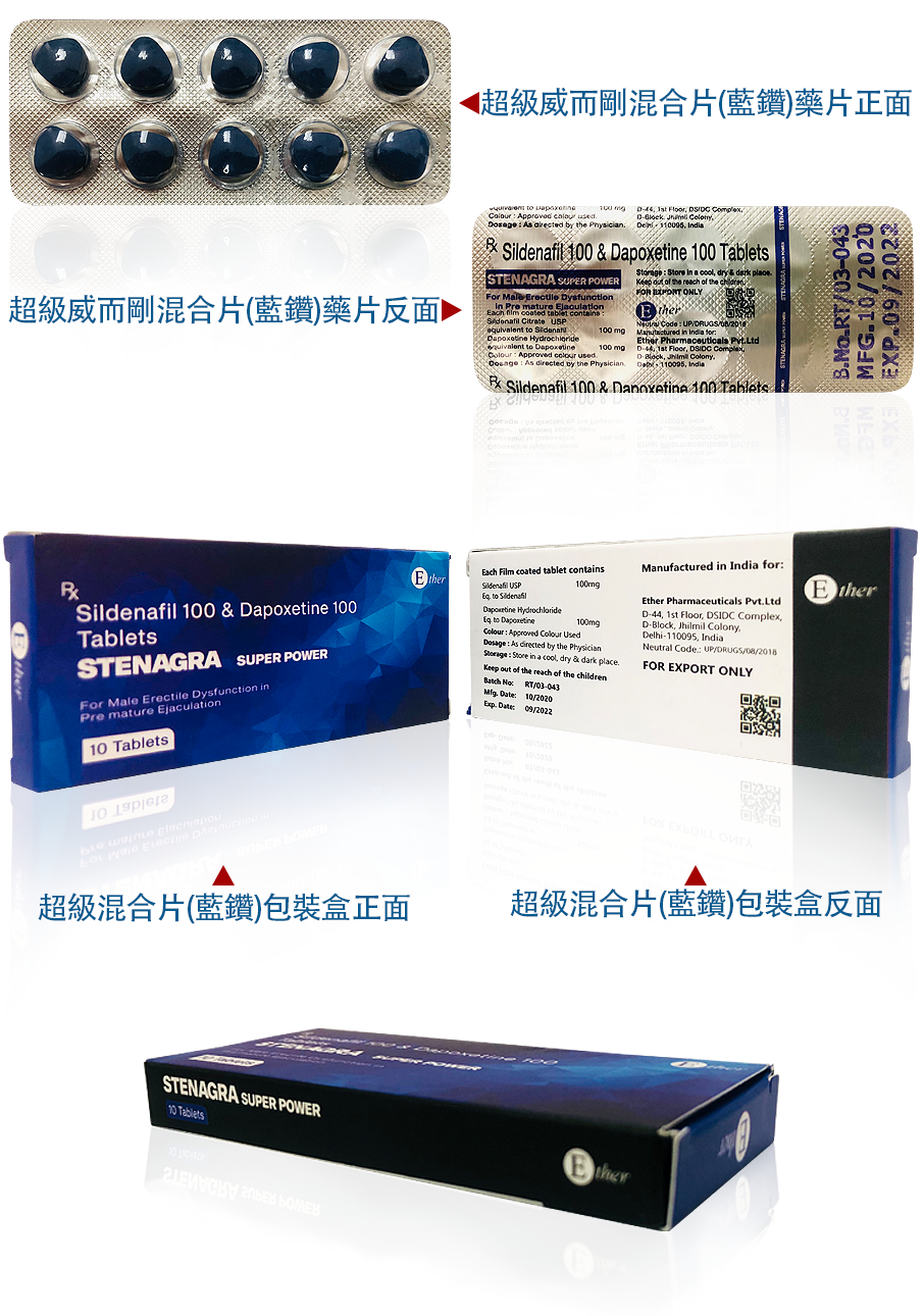 偉哥威而鋼雙效片西地那非和達泊西汀獨特的配方能夠增強陰莖內血液循環,增強快感,延長性交時間,陰莖能多次強力勃起,三十分鍾內陰莖增粗、增大、增硬,長久服用能夠使陰莖在長度、硬度、粗度等方面永久性增長,同時能增進 性欲,擺脫早洩給妳帶來的尴尬。